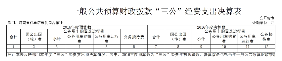 (七)2016年度一般公共預算財政撥款“三公”經費支出決算表